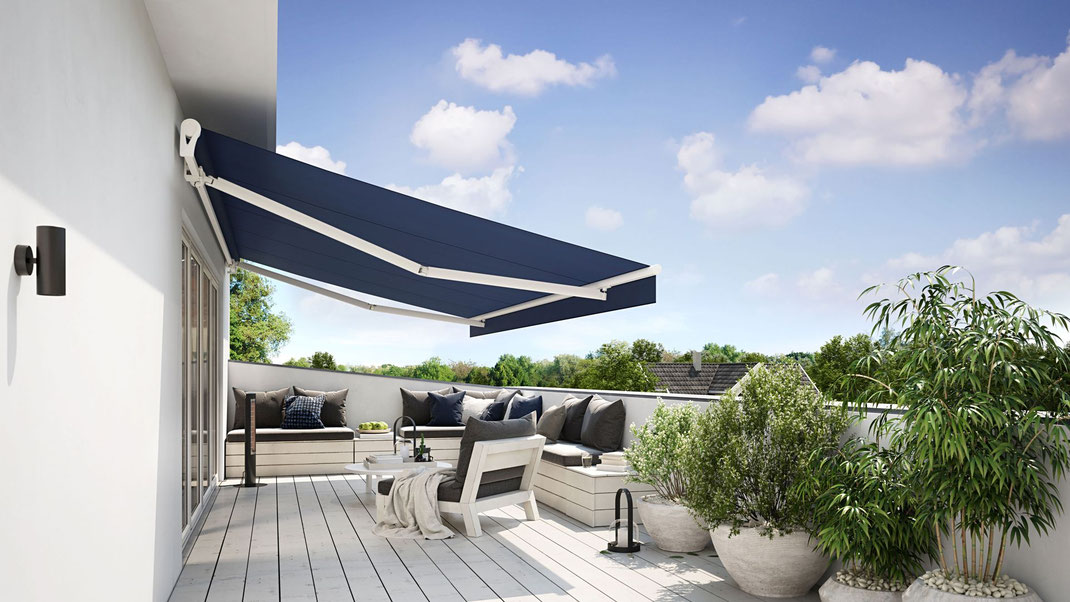 Die markilux 1300 ist eine offene Markise, bei der der Neigungswinkel großzügig anpassbar ist, dank eines optionalen, manuell zu bedienenden Neigungsverstellgetriebes. Mit diesem Feature bietet diese Sonnenschutzlösung auch bei niedrigem Sonnenstand angenehmen Schatten auf Balkon und Terrasse. Für zusätzlichen Schutz bei tiefstehender Sonne kann das optionale markilux Schattenplus gewählt werden, ein ausfahrbarer vertikaler Sonnen- und Sichtschutz, der im Ausfallprofil der Markise integriert ist.