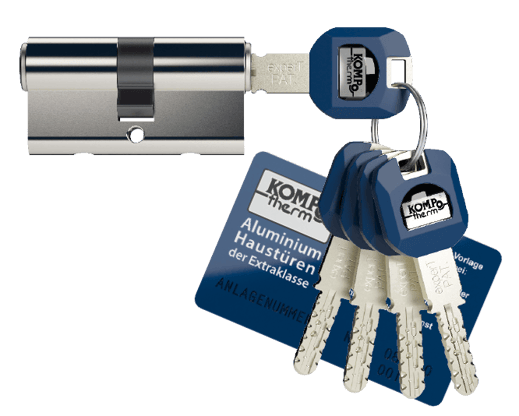 Bei diesem hohen Sicherheitsanspruch lassen sich Nachschlüssel natürlich nicht einfach beim Schlüsseldienst anfertigen: Diese können bei Ihrem KOMPOtherm® Fachpartner nachbestellt werden.