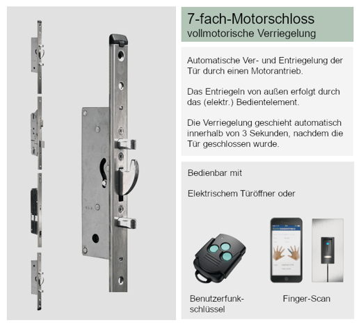 Motorisierte Verriegelungen sind die Voraussetzung für einige Anforderungen an eine Tür. Die Kombination von Automatik-Verriegelung und elektrischem Türöffner ist nur als Motor-Variante möglich. Oder der Anspruch, die Haustür mit der Firmen-RFID-Karte zu öffnen, kann nur von einem Motorschloss erfüllt werden.
