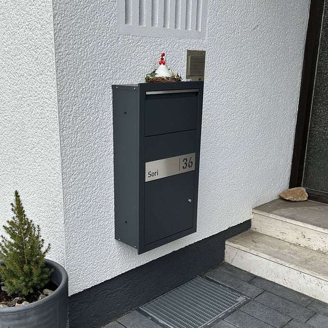 Alle unsere Paketboxen sind aus pulverbeschichtetem Stahl gefertigt und in der modernen Trendfarbe Anthrazit (RAL 7016) gehalten. Sie sind wetterfest und einfach zu reinigen. Das Montagematerial für die Wandmontage ist in jedem Paket enthalten. Bei uns können Sie Paketboxen kaufen, die sicher, stilvoll und praktisch sind.
