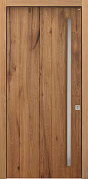 Die gediegene Optik jahrhundertealter Eiche wird kombiniert mit modernem, edlem Design. Die für den gehobenen Objektbau konzipierten Türen sind ideal für zeitgemäße architektonische Konzepte, die eine Verbindung aus alt und neu schaffen. Dabei wird die schlichte, edle Optik der Türen durch das rahmenbündige Türblatt sowie auf Wunsch durch seitlich angebrachte, praktisch rahmenlose Glaselemente betont.